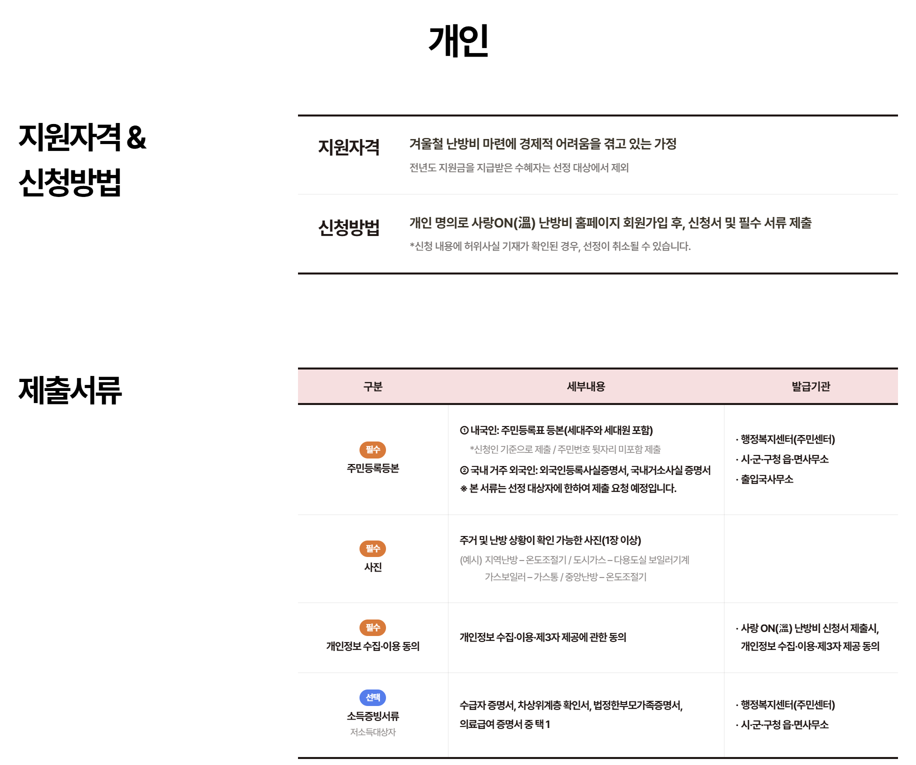 사랑온난방비 홈페이지에서는 개인 신청자와 후원자가
