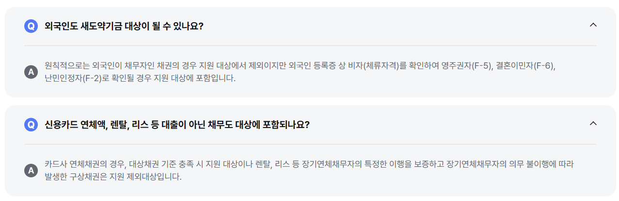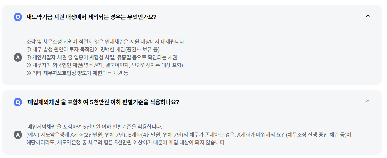 사채나 불법 금융 거래로 인한 채무는 지원이 불가합니다.