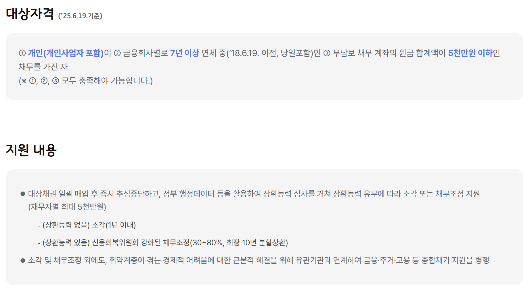 신청 가능한 대상자는 장기 연체자 또는