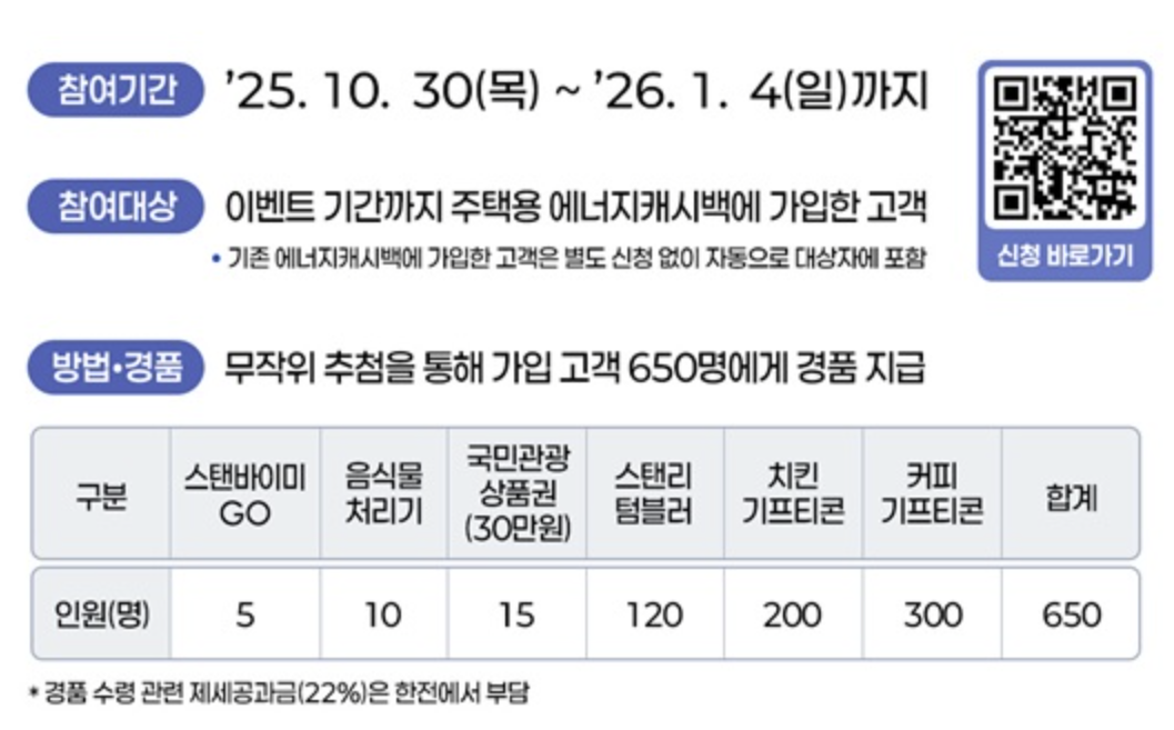 스탠바이미GO, 음식물처리기, 국민관광상품권 등 다양한 경품이 지급됩니다.