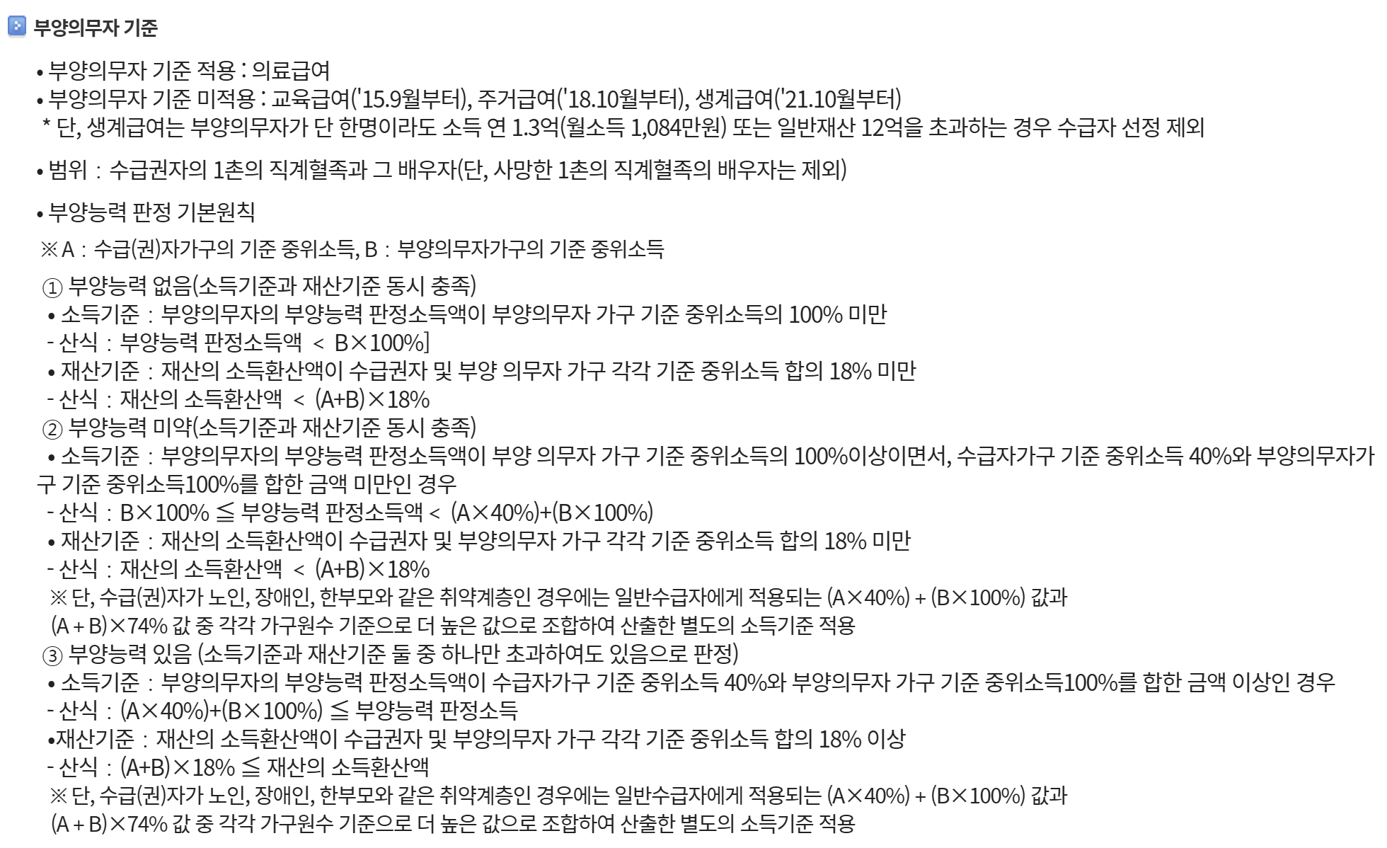 이 기준은 매년 보건복지부가 발표하는 중위소득에 따라 달라지며,