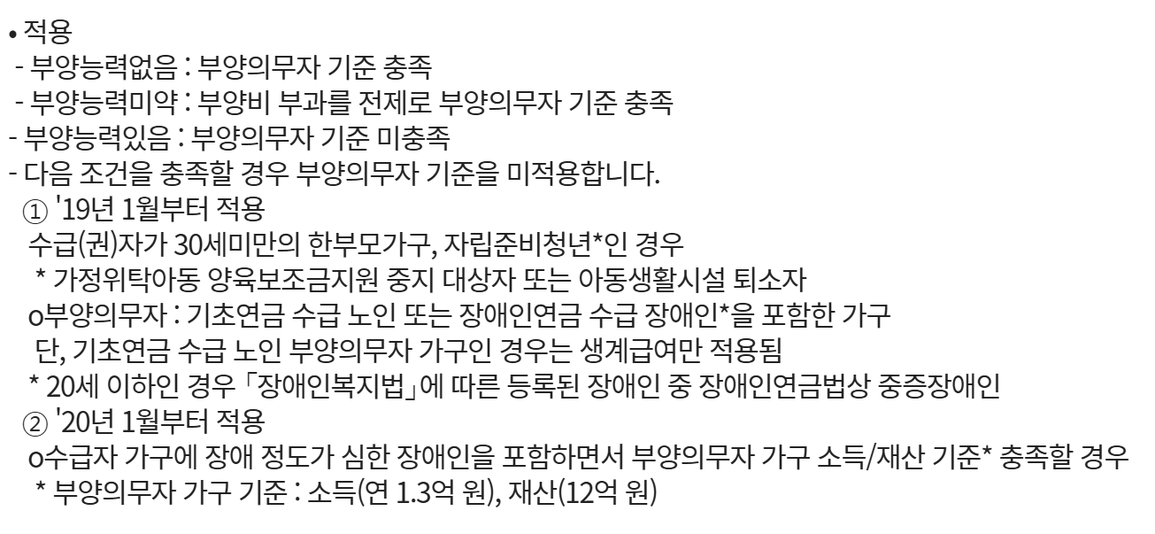 또한 부양의무자가 있어도 실제로 부양이 어렵거나
