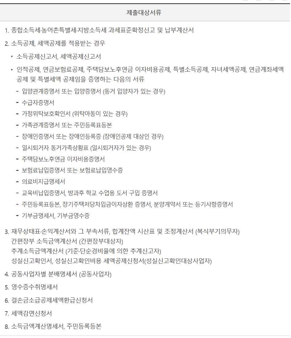 사업소득이나 임대소득이 있는 경우에는 세무전문가 상담을 권장합니다.